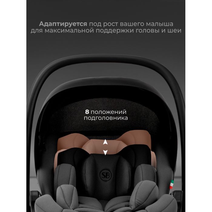 Регулируемый подголовник (8 положений) позволяет адаптировать автолюльку под рост вашего ребенка, обеспечивая поддержку головы и шеи.