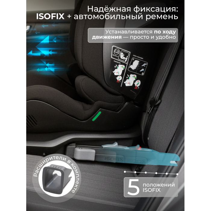 Автокресло со встроенной спинкой оснащено креплениями ISOFIX для легкой