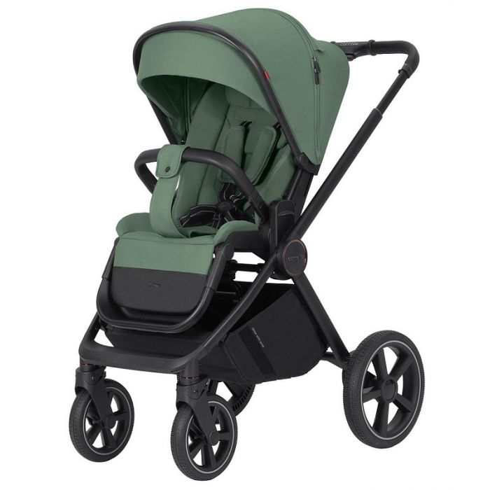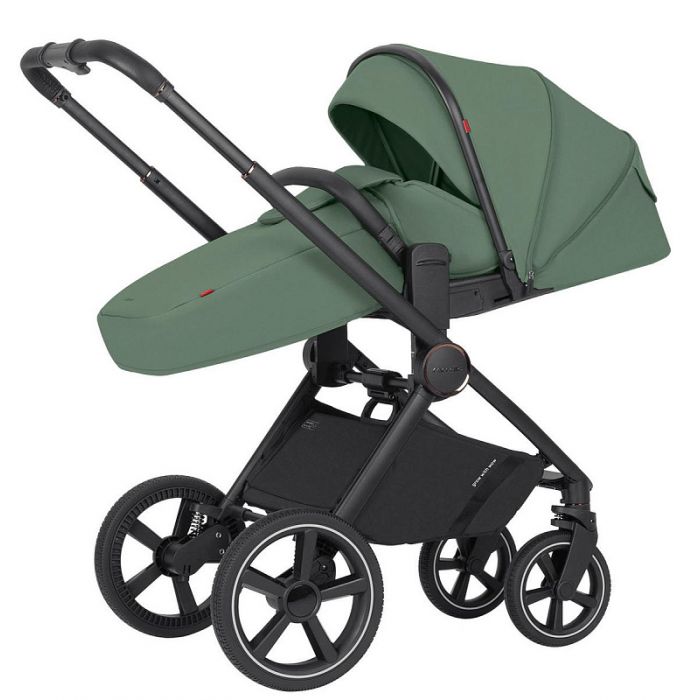 Коляска оснащена практичными резиновыми колесами, которые не будут зависеть от температуры на улице, не будут прокалываться и греметь в зависимости от дорожного покрытия. Хорошая амортизация позволит сглаживать неровности дороги, оберегая чуткий сон малыша. Выдвижная телескопическая ручка с приятным покрытием из эко кожи, так же позволит получить удовольствие во время прогулки. Большая корзина под сидением/люлькой оснащена удобными магнитами. Магниты позволят увеличить объем корзины при необходимости, а в обычном размере корзины все смотрится красиво и аккуратно.