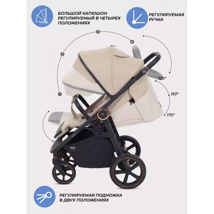 Регулировка капора прогулочного блока: 4 положения
