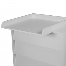 Кроме того, столешница некоторых разновидностей этого предмета меблировки не будет простаивать без дела – буквально в несколько движений она трансформируется в столик с высокими бортиками, обеспечивающими ребенку безопасность. Такой пеленальный комод можно использовать для переодевания крохи, сеансов массажа, гигиенических процедур или принятия воздушных ванн.