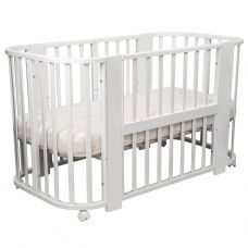 Подобная мебель является весьма удобной в быту – ее можно установить как в центре комнаты, так и в углу или под стенкой, а небольшие колесики делают процесс перемещения кровати с места на место легким и необременительным. Кроме того, круглые кроватки для новорожденных со съемными бортами удобно приставлять к спальному месту родителей – это облегчает мамам ночные кормления и позволяет успокоить закапризничавшее чадо, не покидая теплой уютной постели.