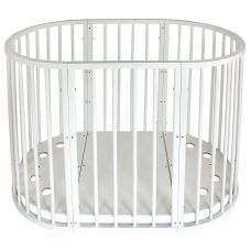 Отличное решение для приверженцев стабильности и постоянства – круглая кроватка для ребенка. Благодаря ей вам не придется постоянно менять обстановку детской комнаты по мере роста малыша – многофункциональная конструкция сможет прослужить самому маленькому члену семьи с рождения до достижения им возраста 5-6 лет.
