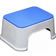 Подставка-табурет выполнена из пластика и резины, а потому она долговечная и безопасная.