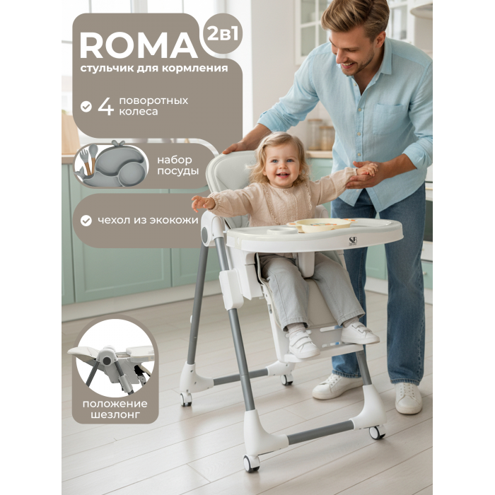 Sweet Baby Roma - стульчик для кормления, который сделает жизнь вашего ребёнка намного комфортнее и удобнее. Насладитесь премиальным качеством и легкостью ухода благодаря использованию эко-кожи, а также добавьте стиль в вашу детскую комнату.